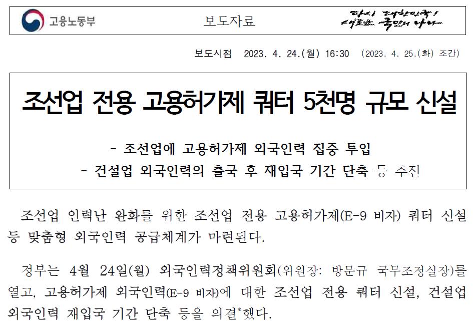 「외국인근로자의 고용 등에 관한 법률」 제17조제1항 및 같은 법 시행규칙 제14조에 따라 위와 같이