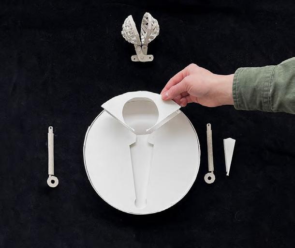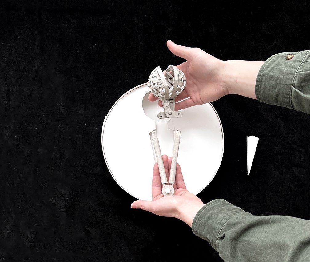 In investigating the movement of my tea steeper I learned more about how the motion of my object creates space, and the importance of functionality. Using these same aspects I reimagined my previous wall into a physical model that spins, weaves, slides and opens creating a plethora of functions and space.