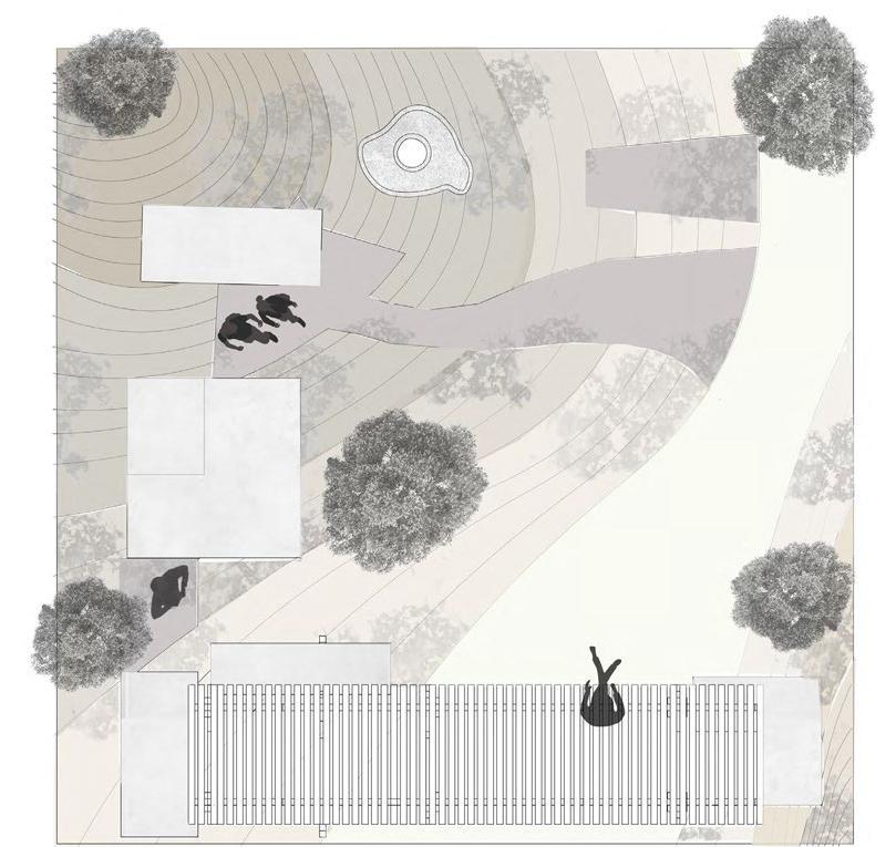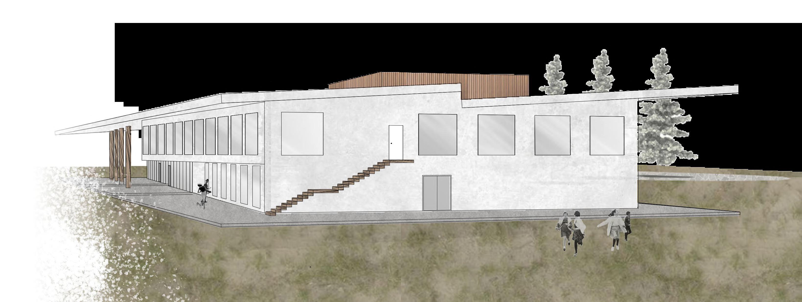 The grand canopy that encompasses the center forms a wide exterior gathering space and the interior is sectioned between public and private spaces but with a central circulation path to further engage occupants. The envision for this civic center is to become a common space for the community of Cayce standing tall and preeminent on the corner of the town through its geometry and variation in its elevations, but also inviting through its materials and incorporation within the site. Through all the architectural decisions made, the common goal was to create an enjoyable facility for all of Cayce to bring the community together and serve the needs of the town.