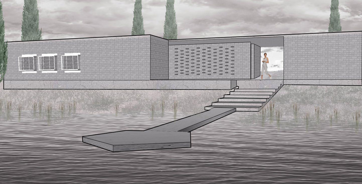 Throughout this past module we have analyzed a wall detail from a building of our choosing to learn more behind the construction of building. From this we cultivated a field house addition to the Snow Facility Outdoor Fitness Center. In my project, I analyzed the bay window detail from Coffread House in Charleston, South Carolina designed by W.G. Clark and Charles Menefee. I drew inspiration from the materials glass and concrete and the simplicity these materials create together. In designing my field house, I incorporated these materials into my design, tweaking the brick pattern to allow for more air and light throughout the field house. I also included bay windows in all the showers to create a beautiful moment for individuals while decompressing after a long workout outdoors. The overall appeal curated in my design could be described as both open through the interplay between interior and exterior spaces, as well as secluded and private being off the beaten path.