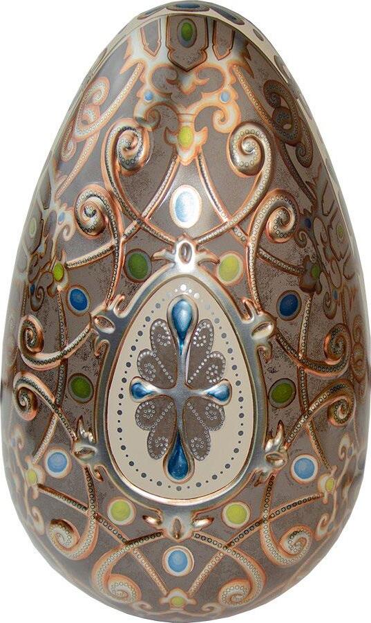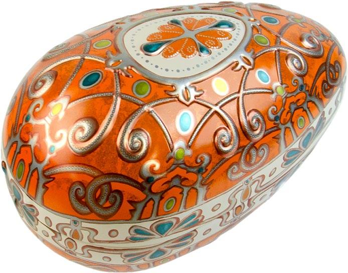 Stora superläckra & exklusiva Fabergé påskägg i plåt. Präglade med en silverdekor på mjuka softade färger. Äggen är fyllda med 750 gram choklad, i en härlig mix av Werthers Original Creamy Filling, Werthers Original Toffee, Twix, Daim, Marabou Nougat Crisp, Refreshersmix, Nötcréme Org Kulor, Rollo Engelsk Kola, Folierade påskägg choklad/nougat, 1 påse Poppeggs 80g, 1 påse Aroma Påskharar Skum. Mixad kartong med 3 färger Fabergé Ägg 750 gr, 15 x 25 cm. Ljuvligt gott! Folierat hygieniskt förpackat! Begränsad upplaga. Antal per kartong 6 st. Art 85098. 259:-