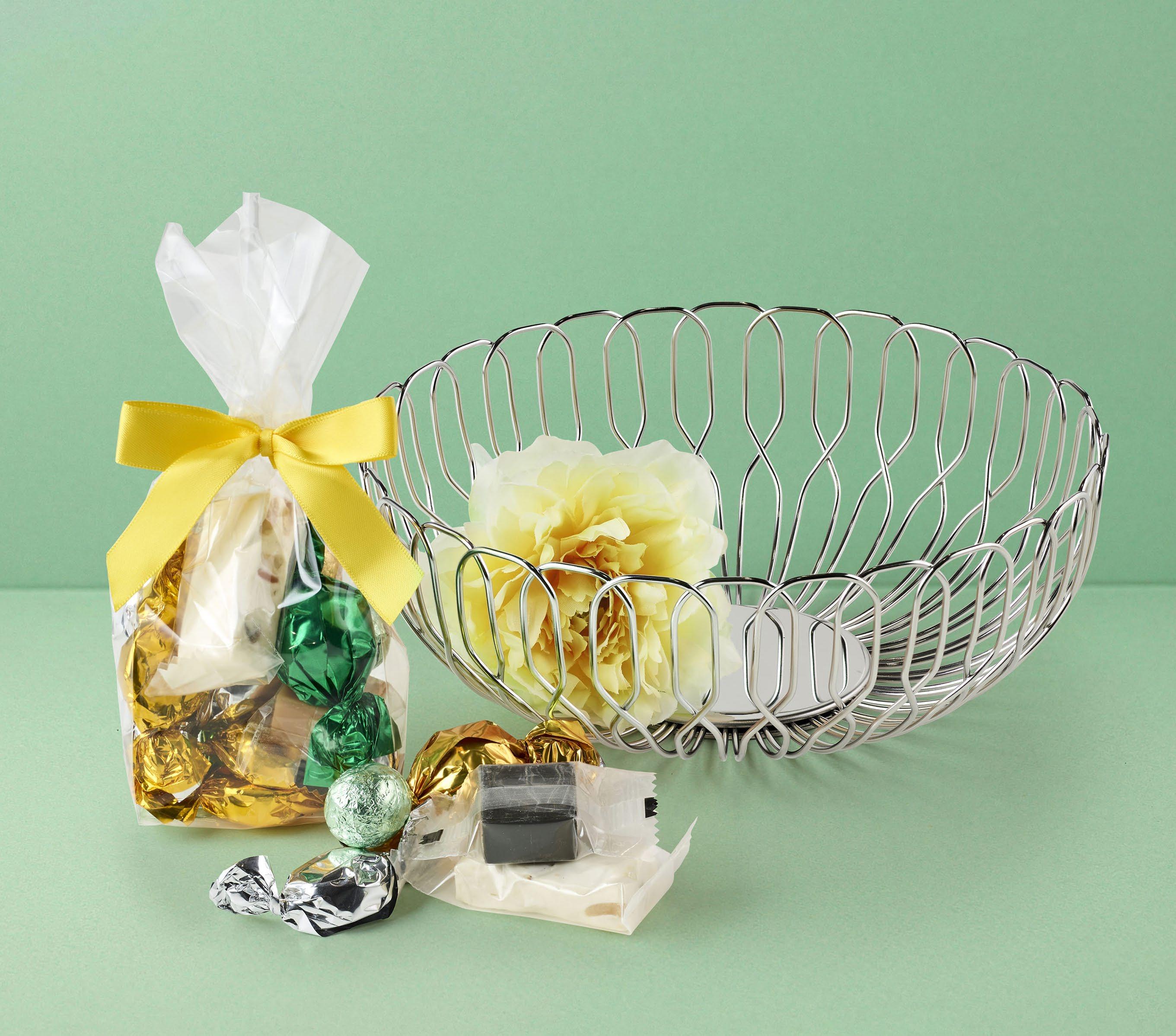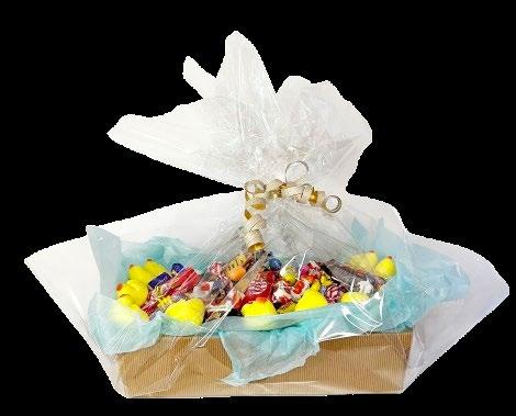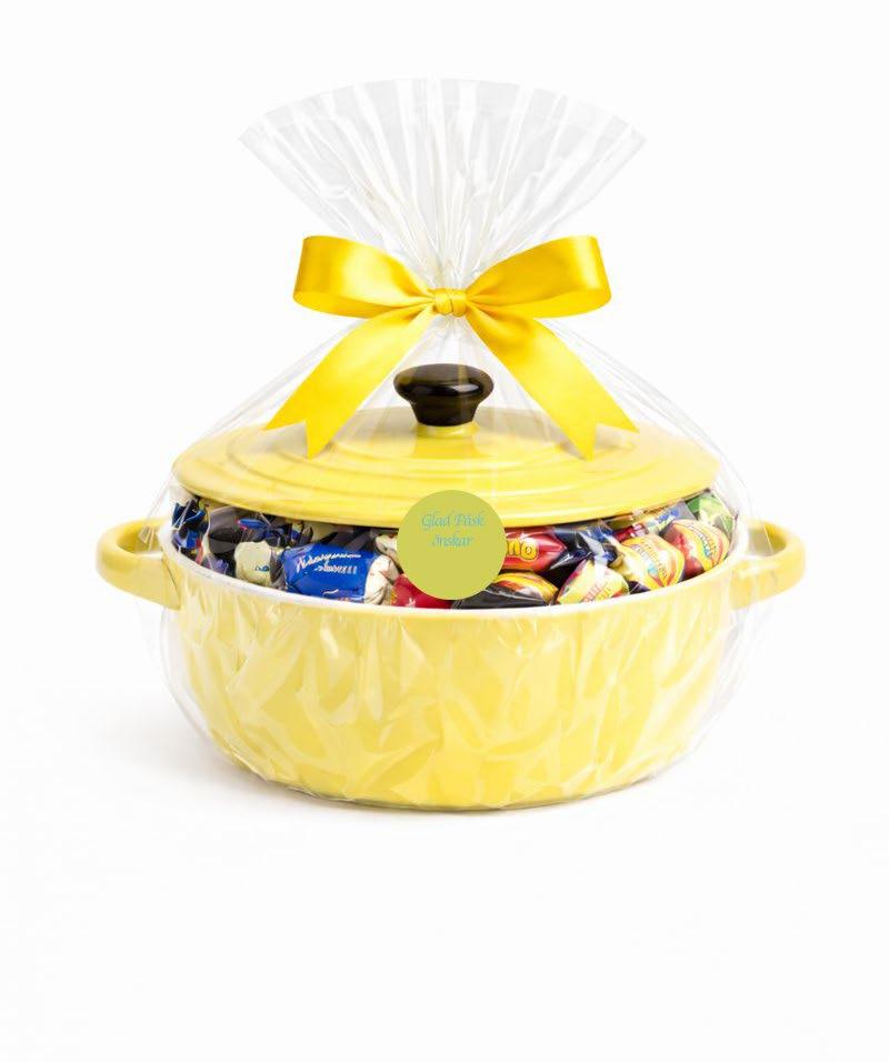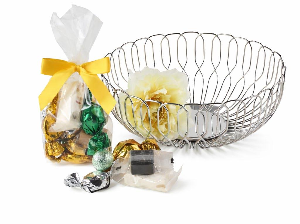 Korgarna kompletterar varenda lunchbord så att alla kan ta sig en näve godis eller två. Korgarna kan dessutom användas efter att godiset är slut, perfekt som förvaring eller använd som en ytterkruka! Alla korgar levereras vackert inslagen i cellofan – komplett med en rosett. Lägg till ett kort för att göra din gåva mer personlig.