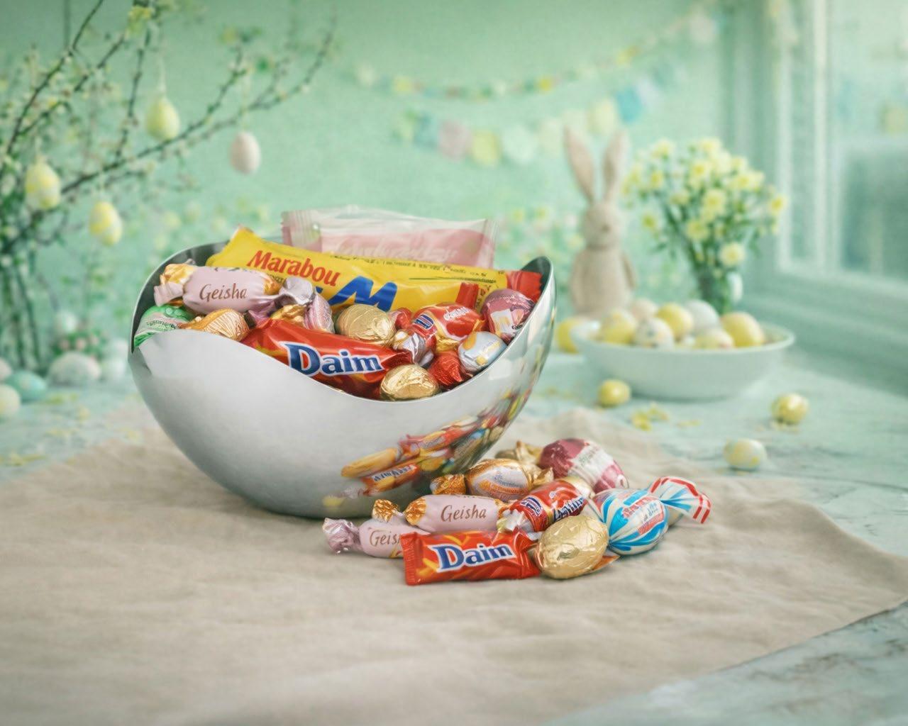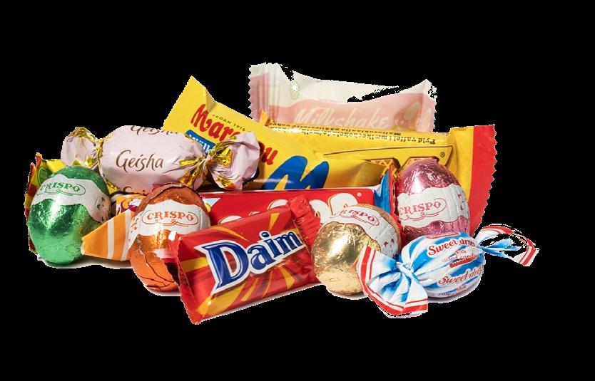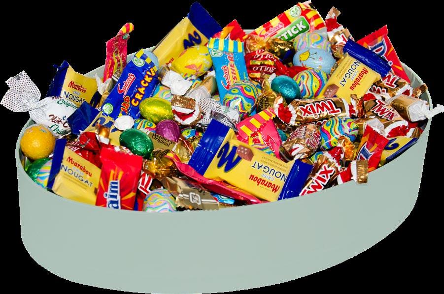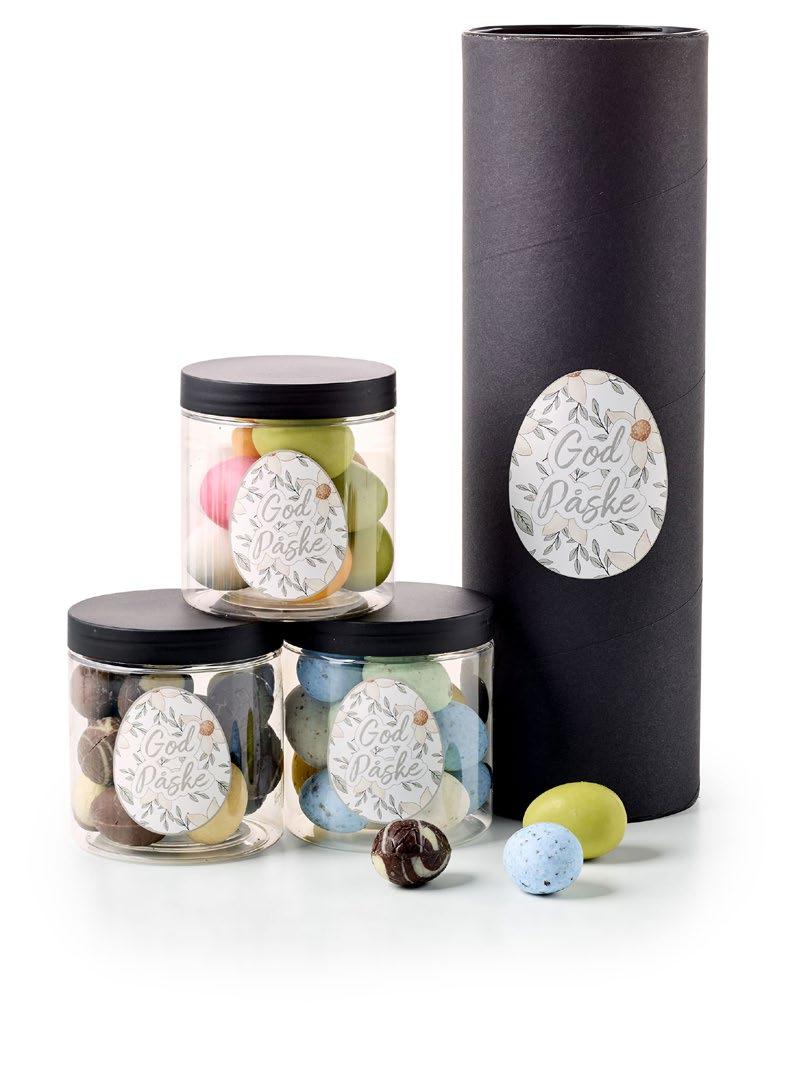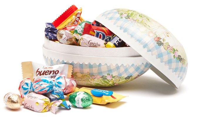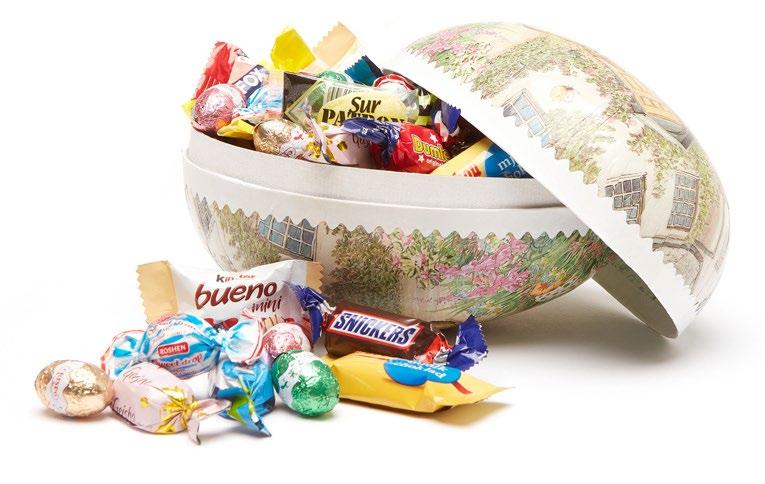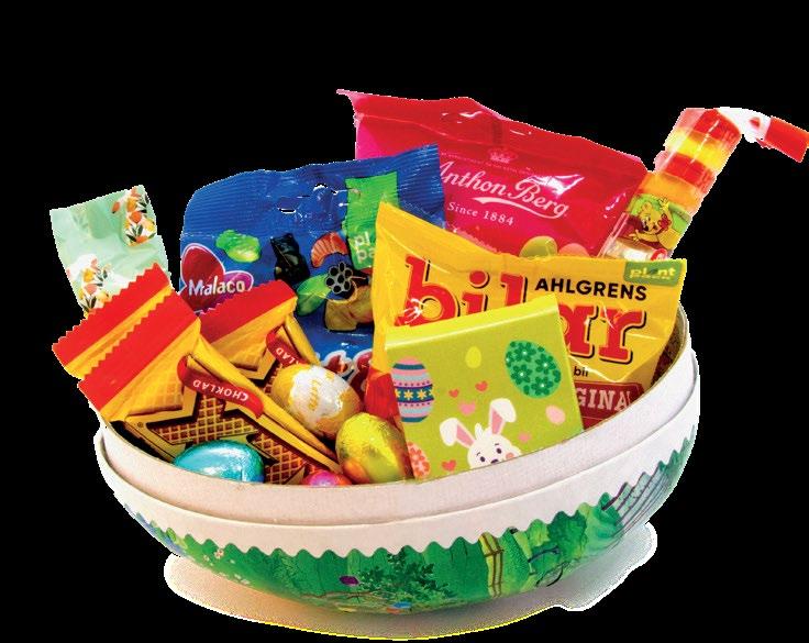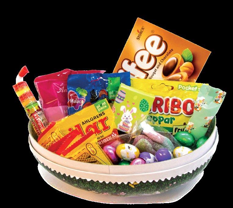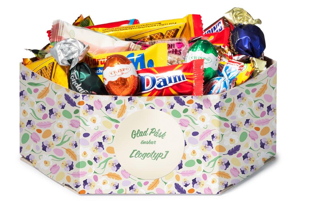 Våra produkter är fyllda med noga utvald konfektyr av högsta kvalitet. Välj mellan våra olika påskblandningar att fylla era gåvor med. Se godismaixarna på nästa sida.