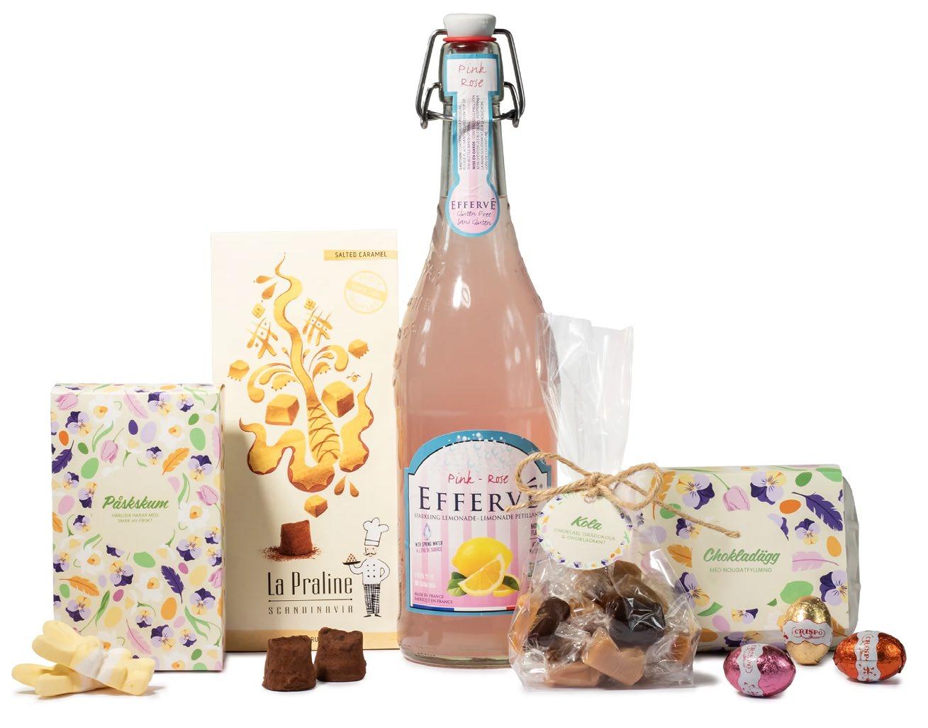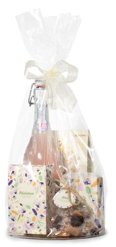 Ett helt kit med det där lilla äggstra. Våra cellofankit förhöjer firandet i påsk. I kitet får du en flaska alkoholfri bubblig lemonad, en ask kakaopudrade tryfflar, en äggkartong med 12 härliga nougatägg, en påse kola med tre olika smaker och en ask påskskum. Som pricken över i:et försluts kiten med ett passande organsaband. Lägg även till ett kort så mottagaren vet vem de ska tacka för en så komplett gåva. 349:-