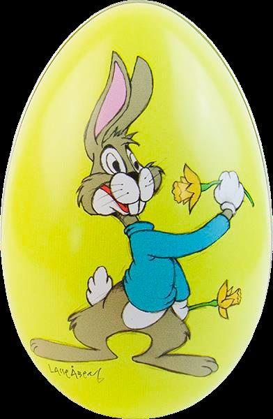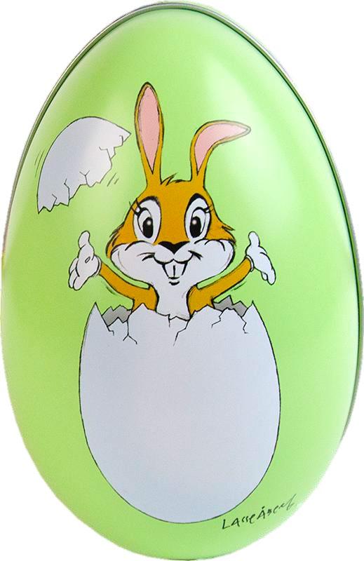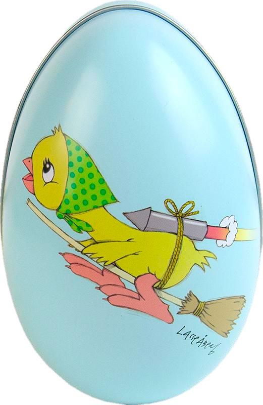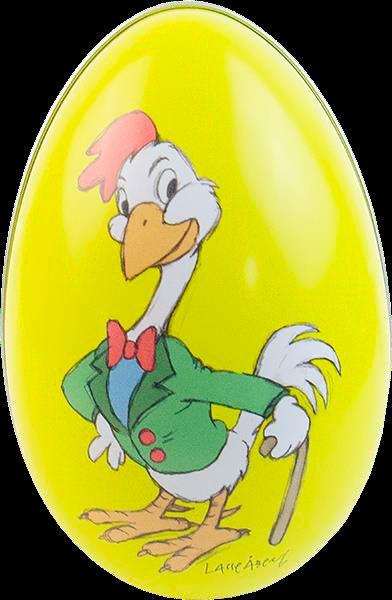Nya motiv och färger! Påskägg i plåt dekorerade med Lasse Åbergs favoritmotiv. Äggen innehåller 300 g av underbar blandad mix av lösgodis som passar perfekt till påskens festligheter: Werthers Creamy Filling, Patroner hallon lakrits och Marabou Mjölkchoklad - Äggande- gott! Folierade och hygieniskt förpackat! Design Lasse Åberg. Begränsad upplaga. Stl. 15 cm. Art 85074. Antal per kartong 20 st. Samlarobjekt!