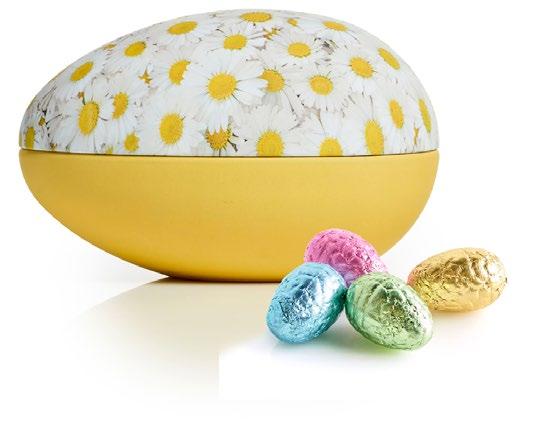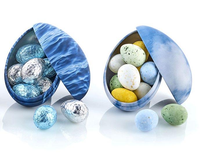 Stolta, vackra, exklusiva & dekorativa ägg på ”fot”. Stående & Präglade ägg i rosa, gul och grön design förgyller hela påskhelgen och alla andra dagar. Design by Dreyer Kliché, Copenhagen. Äggen är fyllda med 400 gr choklad, i en härlig mix av fyllda med en utsökt mix av: Fyllda med en utsökt mix av: