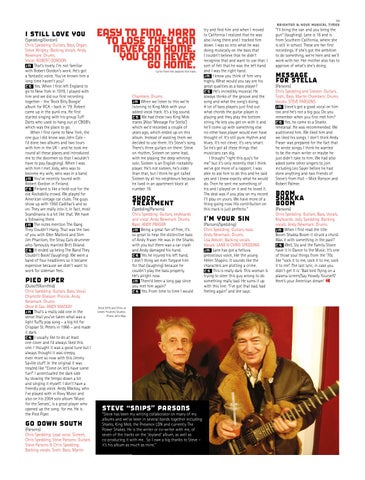 (Spedding/Gordon) Chris Spedding: Guitars, Bass, Organ. Steve Wrigley: Backing Vocals. Andy Newmark: Drums. Vocal: ROBERT GORDON That’s lovely. I’m not familiar with Robert Gordon’s work. He’s got a fantastic voice. You’ve known him a long time haven’t you? Yes. When I first left England to go to New York in 1978, I played with him and we did our first recording together - the ‘Rock Billy Boogie’ album for RCA - back in ’79. Robert came up in the punk era. He first started singing with his group Tuff Darts who used to hang out at CBGB’s which was the place to go. When I first came to New York, the one guy I did know was John Cale – I’d done two albums and two tours with him in the UK - and he took me round all these places and introduced me to the doormen so that I wouldn’t have to pay (laughing). When I was with him I met Jody, who was to become my wife, who was in a band. You’ve recently toured with Robert Gordon in Finland. Finland is like a hold-out for the old Rockabilly crowd. We played for American vintage car clubs. The guys show up with 1950 Cadillac’s and so on. They are really into it, in fact, most Scandinavia is a bit like that. We have a following there. The notes mention The Gang They Couldn’t Hang. That was the two of you with Glen Matlock and Slim Jim Phantom, the Stray Cats drummer who famously married Britt Ekland. It ended up being The Band They Couldn’t Book! (laughing). We were a band of four headliners so it became expensive because we didn’t want to work for sideman fees.