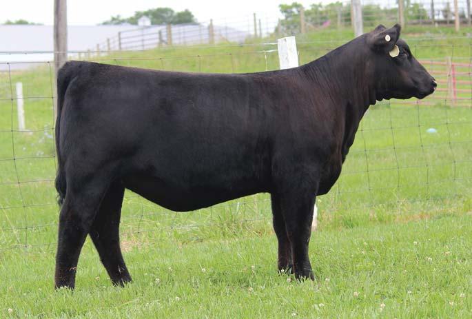 LOT 37A ... This one has been big-time since birth. Without being a high birth weight calf, she was the most impressive one-day-old Angus heifer we’ve ever had born here. And she’s done nothing but continue to impress every step of the way. Starting at the ground up, this heifer has some of the biggest feet I’ve ever seen on an Angus, with perfect, flexible joints and angles. She’s very broody and cowy in her build, with genuine width at her pins, through her chest, and in her forerib. She’s already getting big-haired and will no doubt be a favorite of many. Retaining 50% embryo interest after show career.