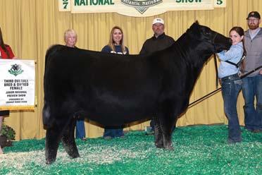 SSF ENVIOUS BLACKBIRD 5022 ‘24 Cattlemen’s Classic Junior Show Supreme Champion Heifer & Champion Angus; Champion Angus Female, FWSS Open Show; Fourth Overall Champion, ’23 Atlantic Nationals Open Show; Third Overall Champion Female, ’23 All-American Angus Breeder’s Futurity Open Show; and Division Champion, ’23 NJAS & ’23 All-American Angus Breeders’ Futurity Jr Show, shown by Samantha VanVorhis
