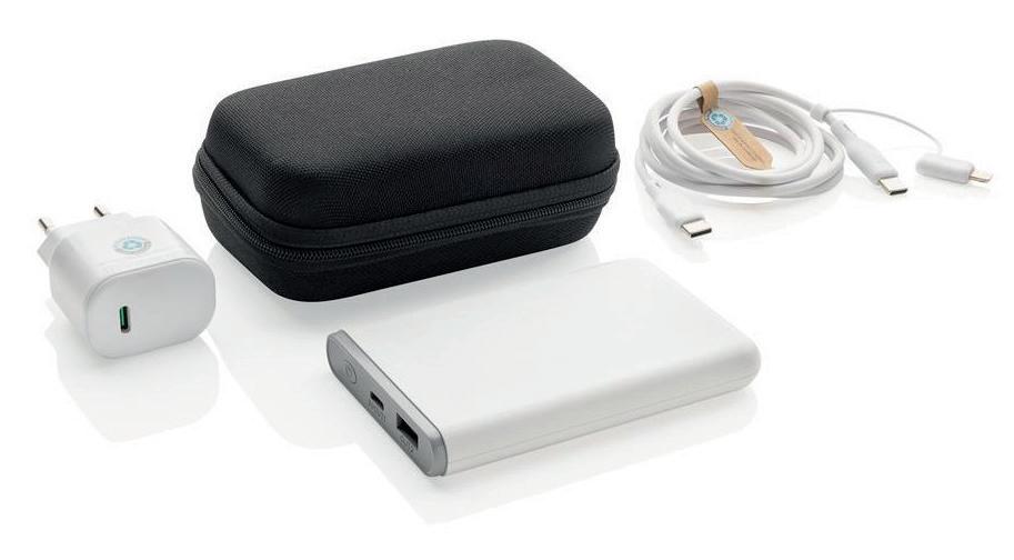 Pagamintaa iš perdirbto TPE. Type-C ir USB-A įkrovimo jungtis. Maksimali srovė 20V/3A.