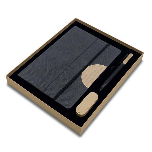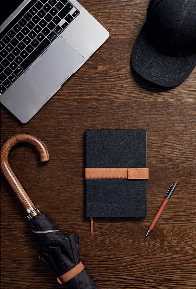 Užrašų knygelė su Jūsų įmonės logotipu.. Rašiklis. Telefono stovas.