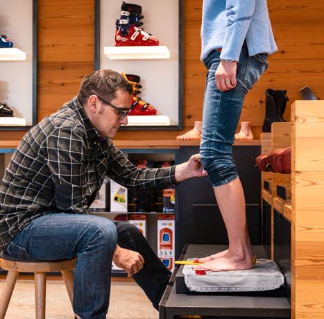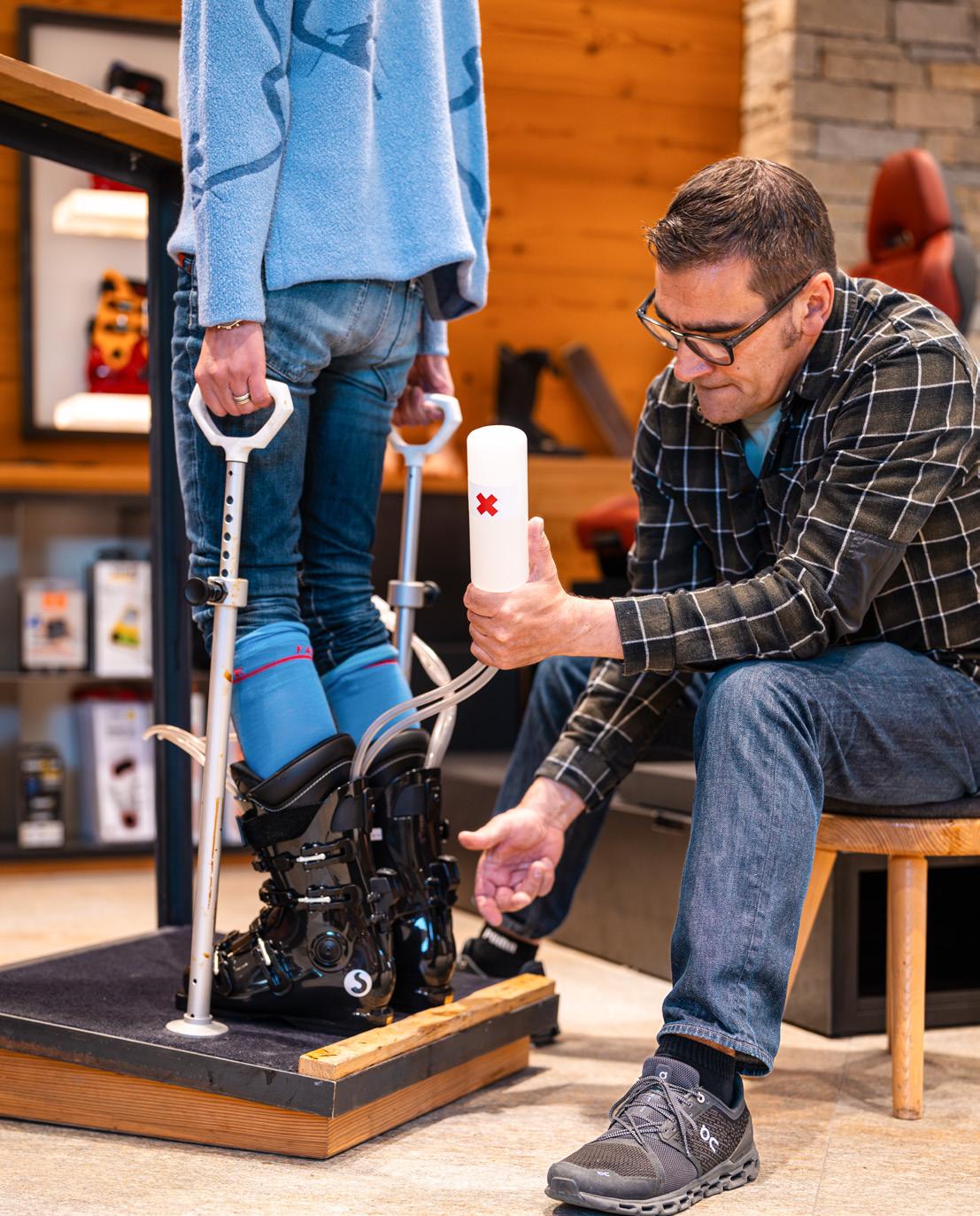 guest distributes their weight. “We then select the right shell shape and boot model, taking into account how someone skis, how athletic they are,