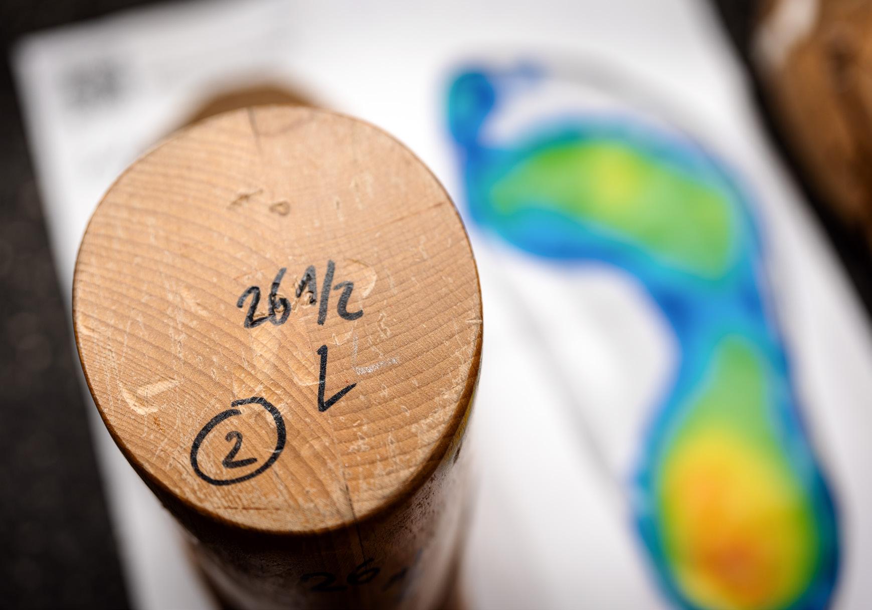Die Muskulatur des menschlichen Fusses ist sehr komplex. Mit dem Alter, aber auch als Folge von mangelndem Training oder zunehmendem Gewicht, erschlafft sie und der Fuss verändert sich. In der Folge kann der Skischuh unbequem werden oder sogar zu schmerzen beginnen. «Die Probleme sind sehr vielfältig, aber wir finden fast für jeden Fuss eine gute Lösung», sagt Claudia (50), die sich bei Skiservice um die Schuhe und die Füsse der Gäste kümmert. Geschätzte 4’500 Paar Skischuhe hat sie in den letzten 30 Jahren bei Skiservice angepasst.