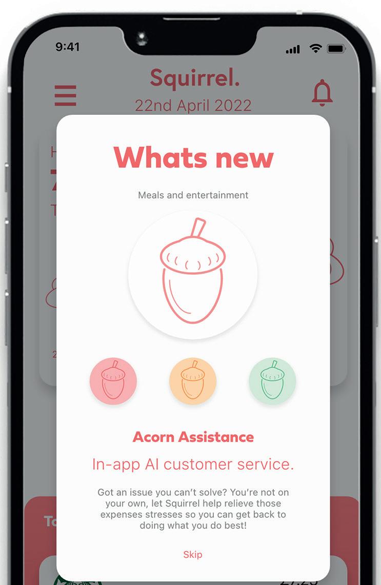 Squirrel is an AI assistant helping employee’s manage their expenses, giving them a sense of achievement for sorting out the little tasks in their day when the main jobs might not be going their way. Giving a sense of confident and pride when expensing. As well as, reating a sense of urgency in a friendly manor .