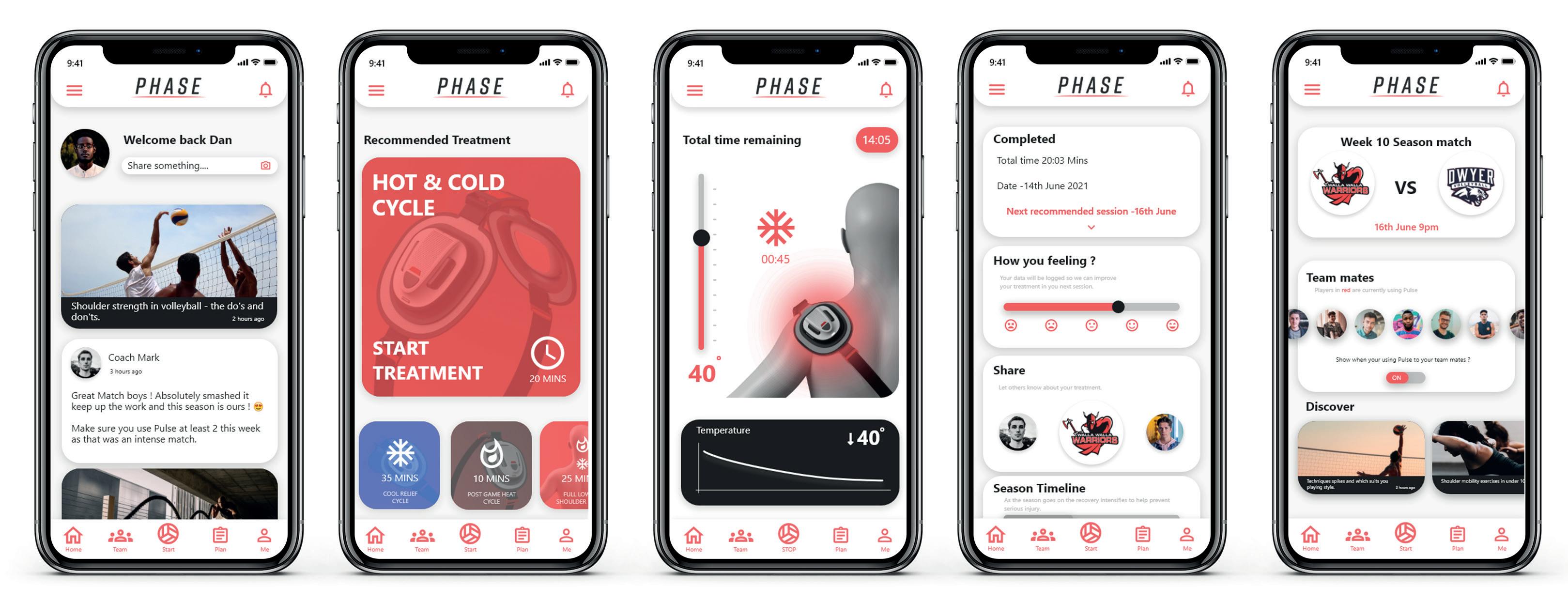 Phase’s app is where you control the device and are given recommended treatments. Coaches can track the shoulder status of their players and teammates are able to see who is using Phase. This has been designed to help reduce stigma and incorporating PHASE into the team’s post game activity.