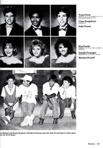 an Michael and Ronnie Meadows with Kevin Downes and wife Julie sit and observe others dancg at the street dance.