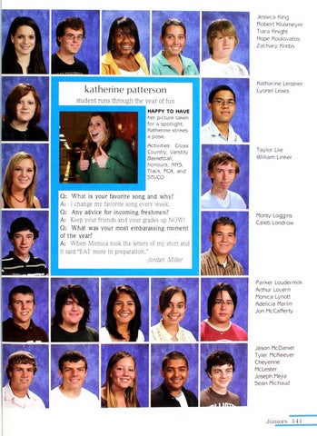 Q: What is your favorite song and why? A: I change my favorite song every week. Q: Any advice for incoming freshmen? A: Keep your friends and your grades up NOW! Q: What was your most embarassing moment of the year? A: When Monica took the letters of my shirt and it said “EAT more in preparation.” -Jordan M ille r