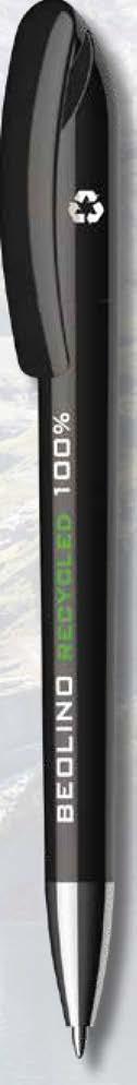 908 Stylo à mécanisme tournant (twist), surface poli-glace. Corps, partie du clip et poite en plastique Fabriqué à 100% de matériau recyclé en noir ou en gris clair.