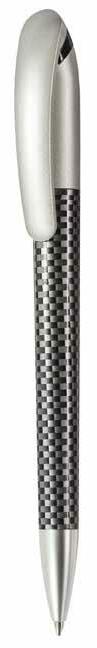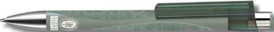 909 Stylo à mécanisme tournant (twist), surface poli-glace. Corps, partie du clip et poite en plastique. Fabriqué à 100% de matériau recyclé en noir ou en gris clair. Pointe en métal chromé brillant.