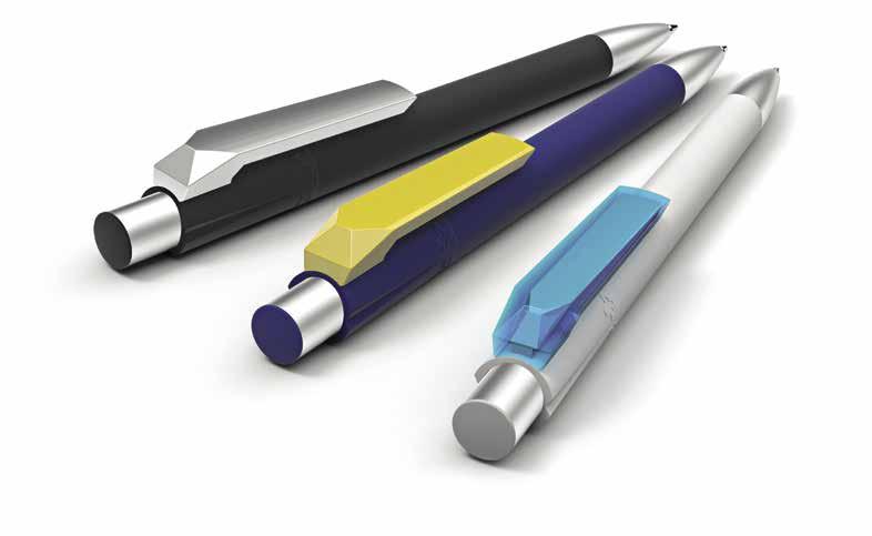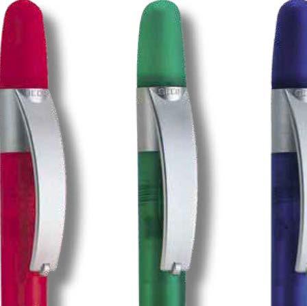 - Couleurs disponibles : choix de 9 couleurs opaques pour le corps – clip en 9 couleurs opaques et 8 couleurs transparentes. - Attributs : métal satiné - Mécanisme : bouton poussoir