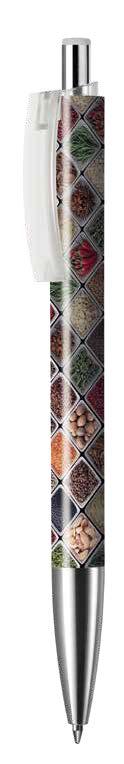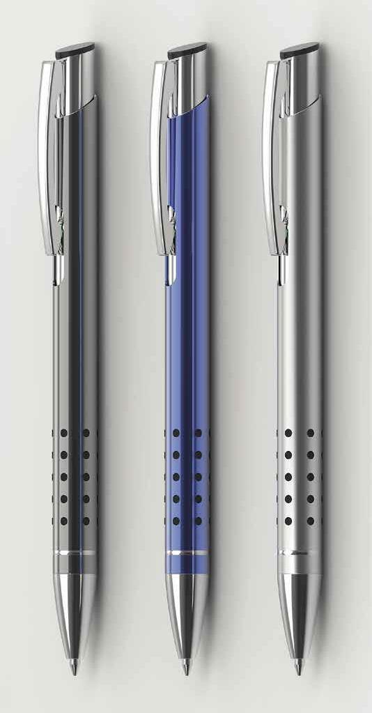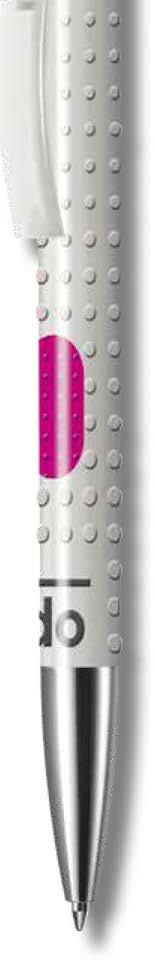 Il est le stylo avec l’idéale surface d’impression : soit en grand format sur le clip ou tout autour sur le corps en impression sérigraphique.