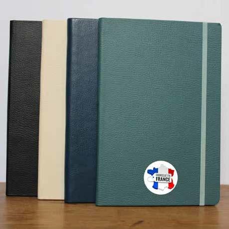 Ces carnets sont réalisés dans nos ateliers en France (Normandie) et les matières utilisées sont toutes d’origine naturelle, certifiées FSC et respectueuses de l’environnement. Nous vous proposons 4 couleurs sélectionnées et tendances : blanc, marron, noir, rose.