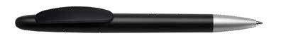 Stylo-bille avec corps givré transparent, surface du clip métallisé argent, poussoir en gomme, écriture noir