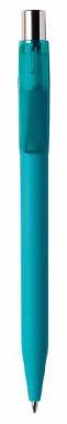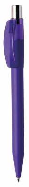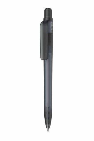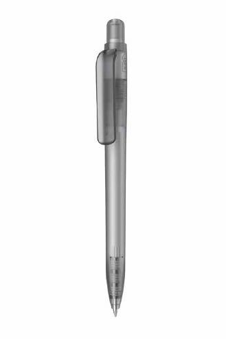 Stylo-bille avec corps givré transparent, surface du clip métallisé argent, poussoir en gomme, écriture noir