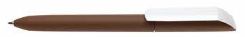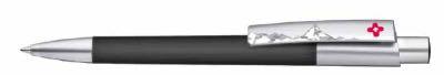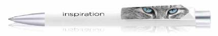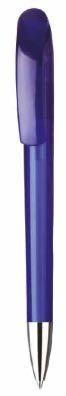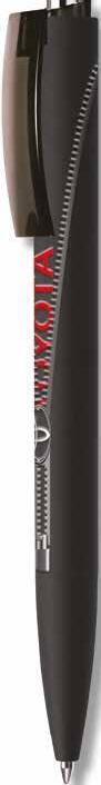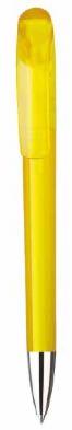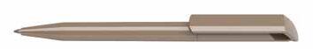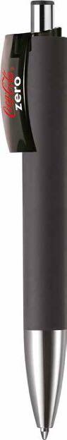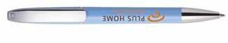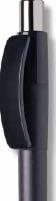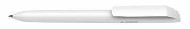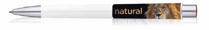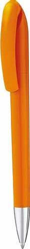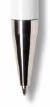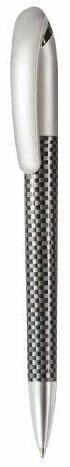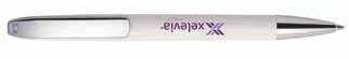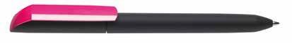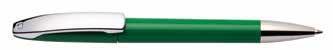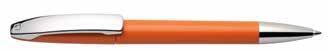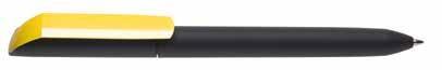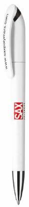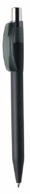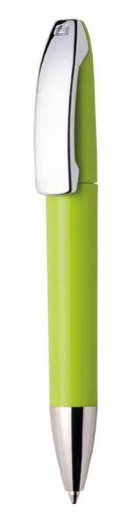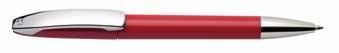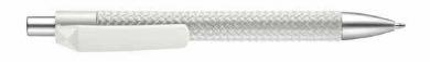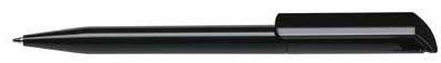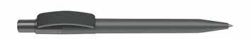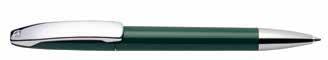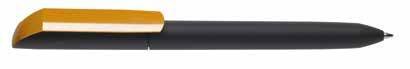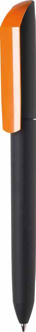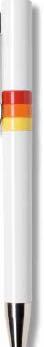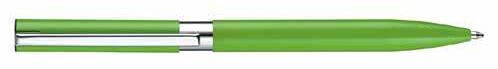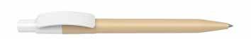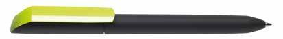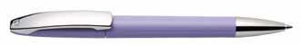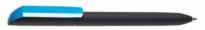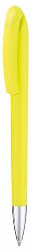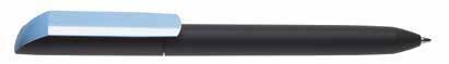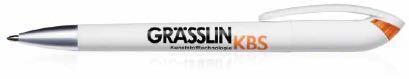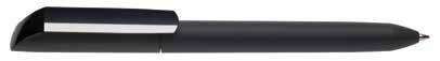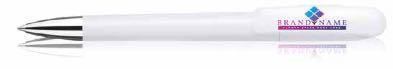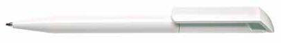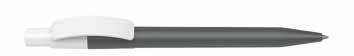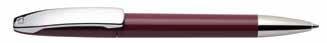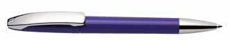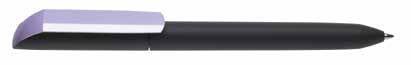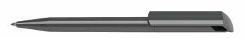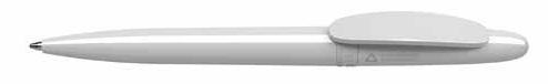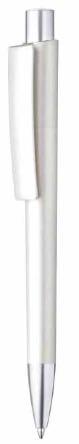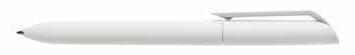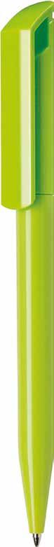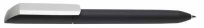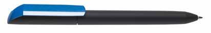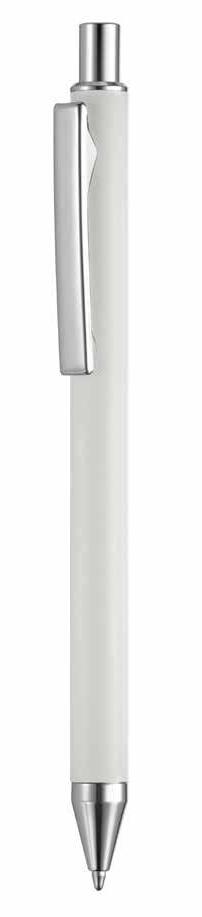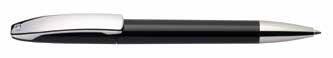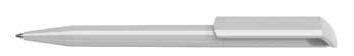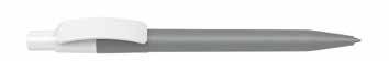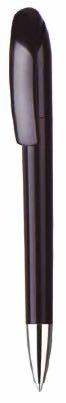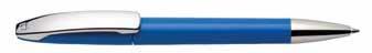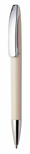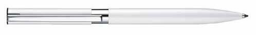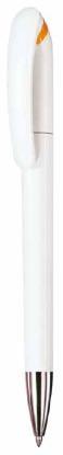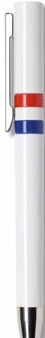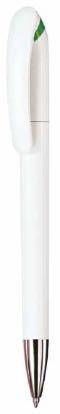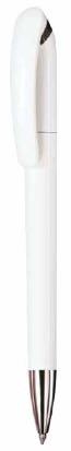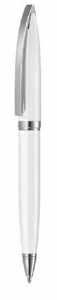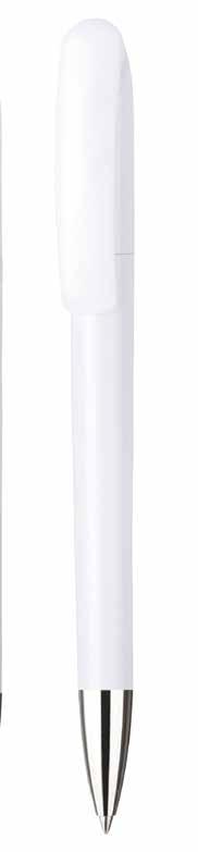 Stylo-bille à mécanisme tournant (twist), corps et partie du clip blanc ou noir, surface poli-glace, attributs en 37 couleurs, pointe en métal chromé brillant.