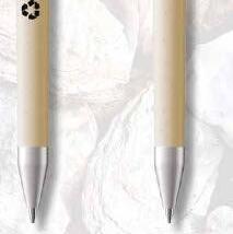 Le nouveau stylo-bille swiss made est 100% dérivé de produits post-consommation recyclé (70% d’équipements électriques et 30% coquilles d’huître), ce qui fait de ce stylo le produit idéal pour la communication éco responsable.