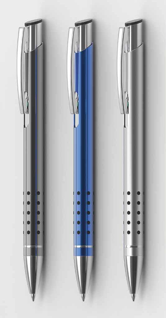 - Stylo-bille en alu argent Attributs noir, écriture noir. Taille de marquage : 7x40 mm.