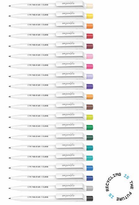 - Couleurs disponibles : choix de 9 couleurs opaques pour le corps, clip en 9 couleurs opaques et 8 couleurs transparentes.