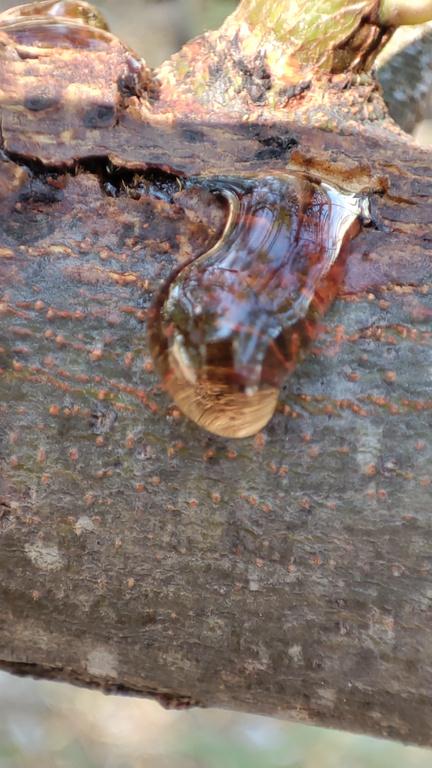 Los árboles tienen ramas y hojas bellas, pero en este caso pude apreciar como uno secretaba resina, su aspecto brilloso y espeso se ve increíble.