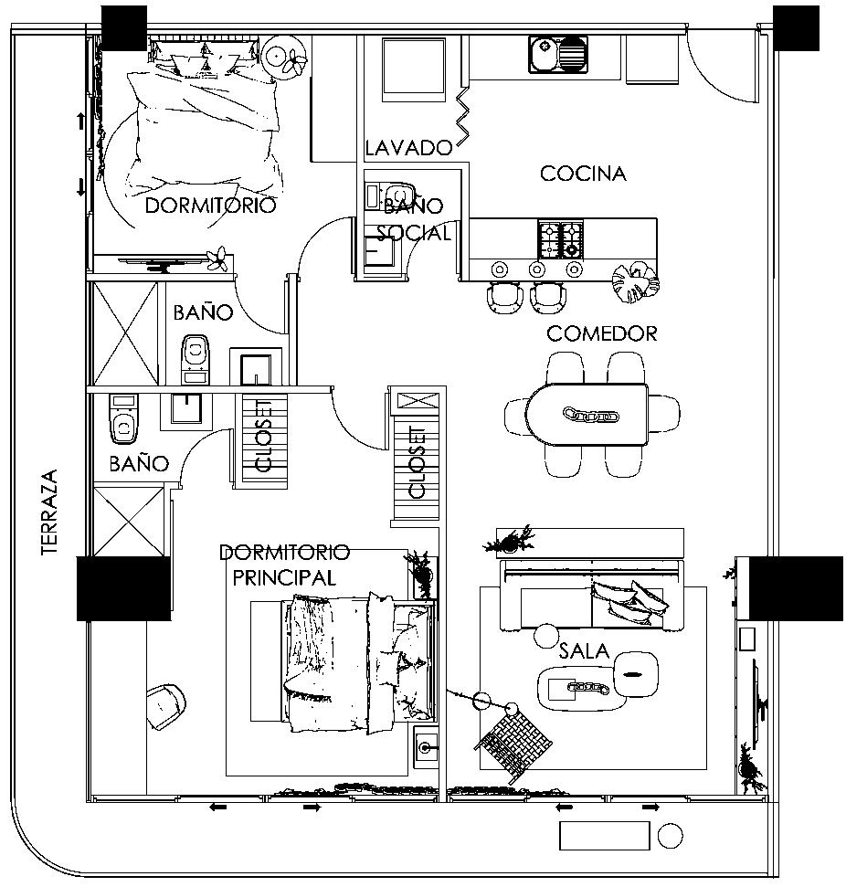 ▪ Los paquetes de amoblamiento y decoración de cada unidad podrán ser reservados con una prima del 10% del valor total. Este monto será reembolsable en caso de que el cliente decline la ejecución en los meses posteriores.