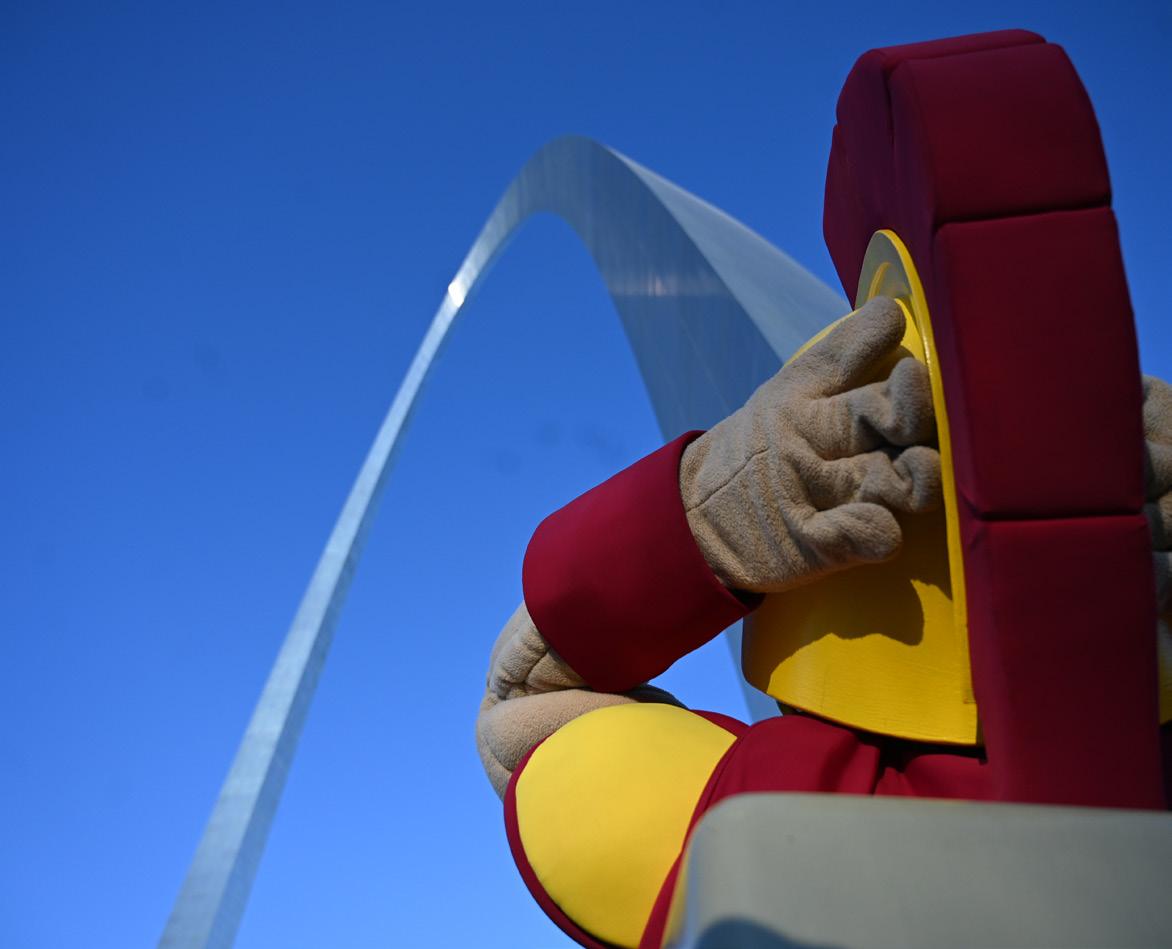 The cover we went for on this issue was supposed to make Sparty seem like a tourist in St. Louis. This made the cover which was unconventional, give a more personal and eye catching view.