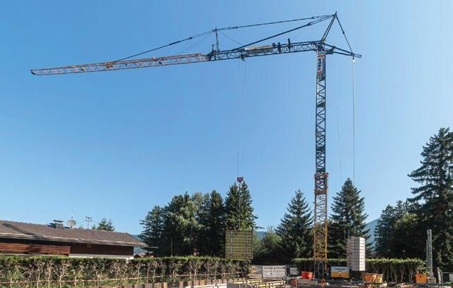 For the construction of a modern residential property with underground garage at Lake Tegernsee, Germany, the construction company Peter Karg is relying on the latest lifting technology from Liebherr. The new Liebherr 43 K serves as the only crane on site and handles all lifting operations, from positioning basement walls and lifting formwork elements to transporting materials for masonry work and the roof structure.