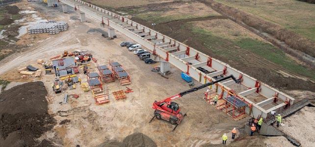 The carriageway slab is being constructed using the in-situ concrete method and is the first project in Croatia to utilise PERI’s VARIOKIT VCT Composite Track. To ensure that the bridge could be constructed quickly and costeffectively, a combination of steel and concrete was chosen.