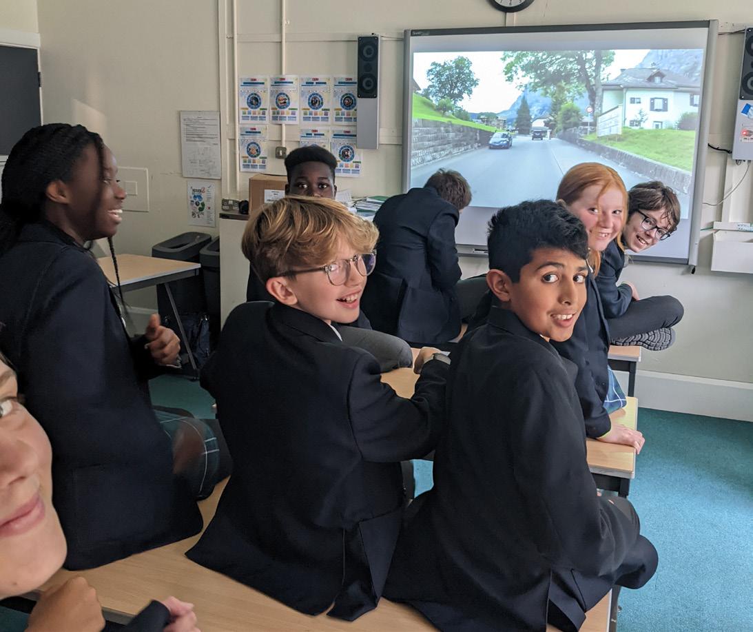 The pupils were preparing for a test on free time activities with an emphasis on sport. We teleported ourselves abroad using cycling videos on the big screen. The pupils in the "basket" of our big table tandem bike had to answer revision questions while the rest cycled furiously, taking it in turns to support each other. They answered the questions perfectly and were inspired by just how beautiful the German speaking world is!