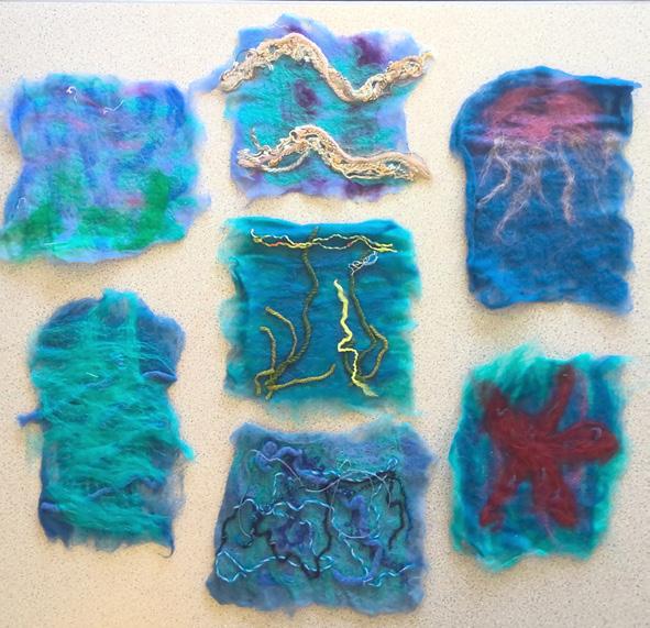 Year 10 Textiles students created felting samples inspired by an underwater theme. This was their first time learning how to make felt using the wet felting process.