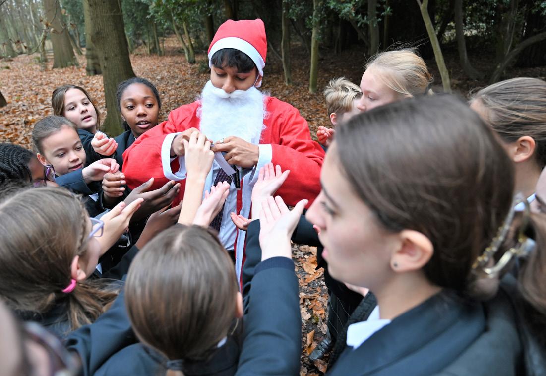 On the last day of term the Leadership Team joined up with the Sixth Form Senior Team to provide some festive entertainment for the whole school community. At 10.20am there was a live broadcast across the school during which it was announced by Fairy Godmother Bizior and Elf GB that the Grinch (Mr Vallance and Mr Battrick) had stolen the Senior Santa Team and hidden them around the School! The pupils had a wonderful time during morning break seeking out the santas, winning tokens which turned into valuable points for their Houses, as well as delicious chocolate treats. The key was to avoid being captured by the Grinch who confiscated any tokens collected - a great source of amusement for the pupils and a fun way to end the term!