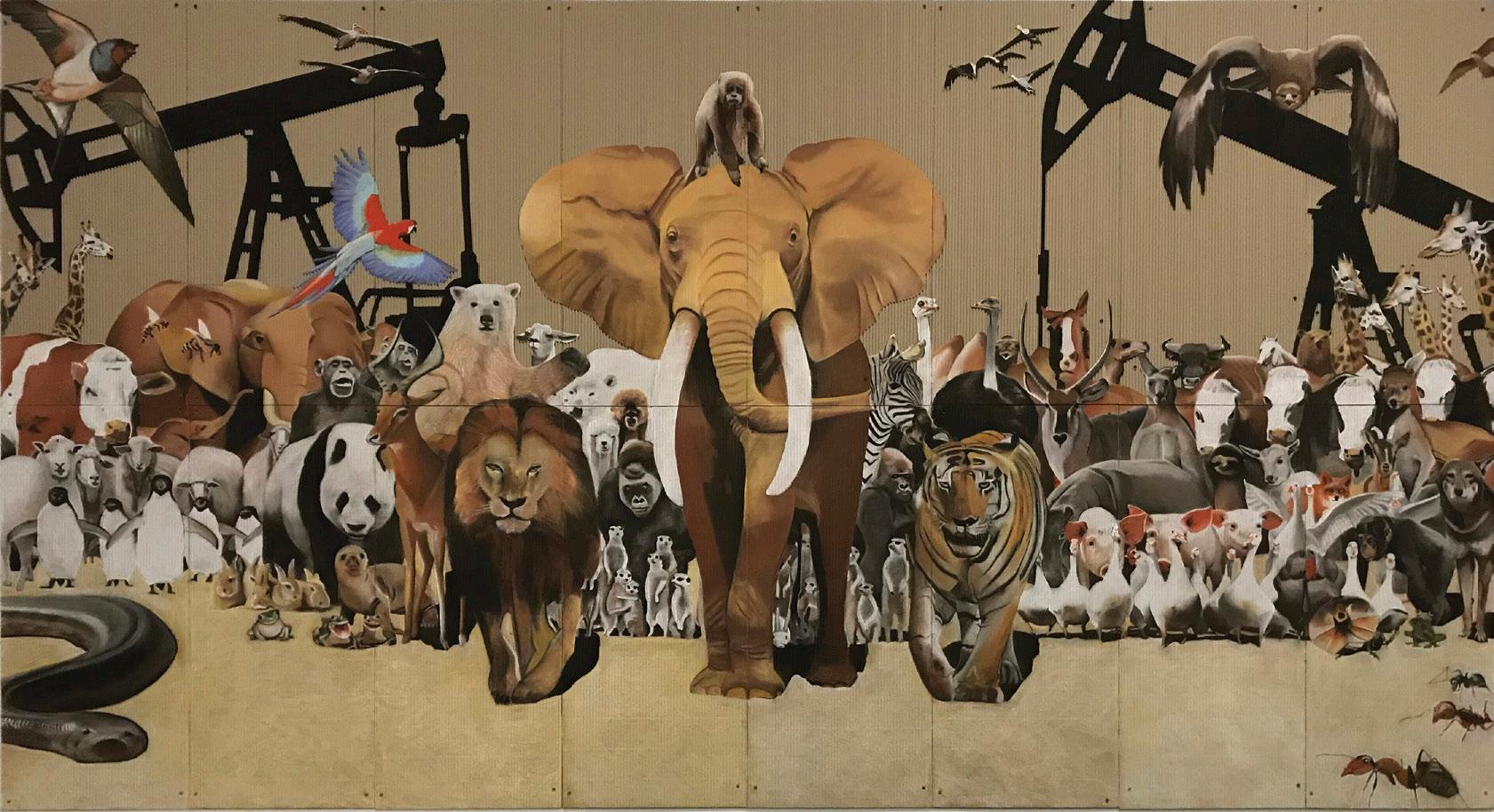 Mixed media on canvas with beeswax and acrylics, 100 x 150 cm