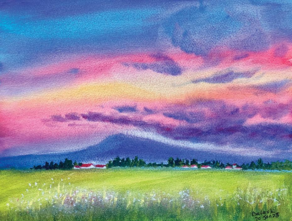 Sweet Grass Valley Watercolor on Arches paper, 12 x 16 in