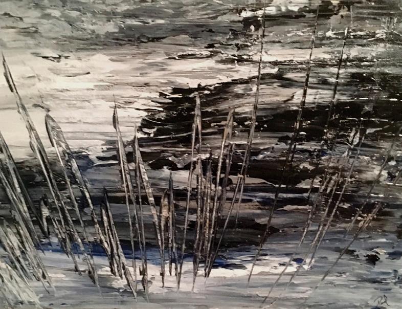 Roseaux des neiges Mixed media on wood panel, 56 x 76 cm