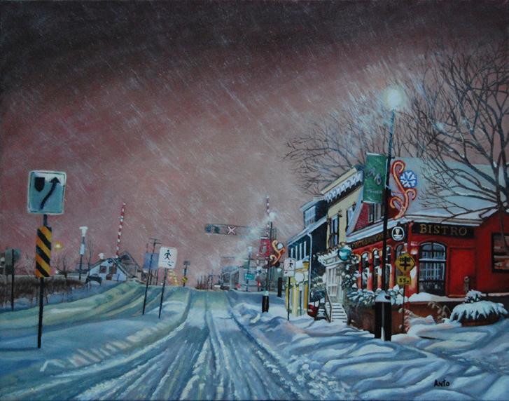 A Happenin’ Place Oil on canvas 12 x 20 in