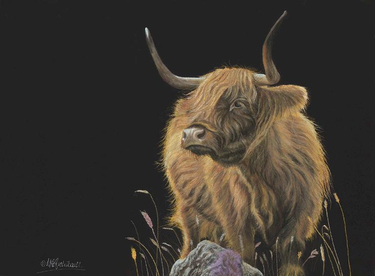 Mary Archibald creates finely detailed animal portraits that convey individuality and presence through precise texture and expressive eyes. Working with lightfast pastel pencils on black backgrounds, she builds depth and realism through controlled contrast and subtle layering. Her work has received international recognition, including awards from Spotlight on Art, Paris, and Circle Arts in New York, San Diego, and Santa Fe. She is a member of CFA, AAA, and PGEI.
