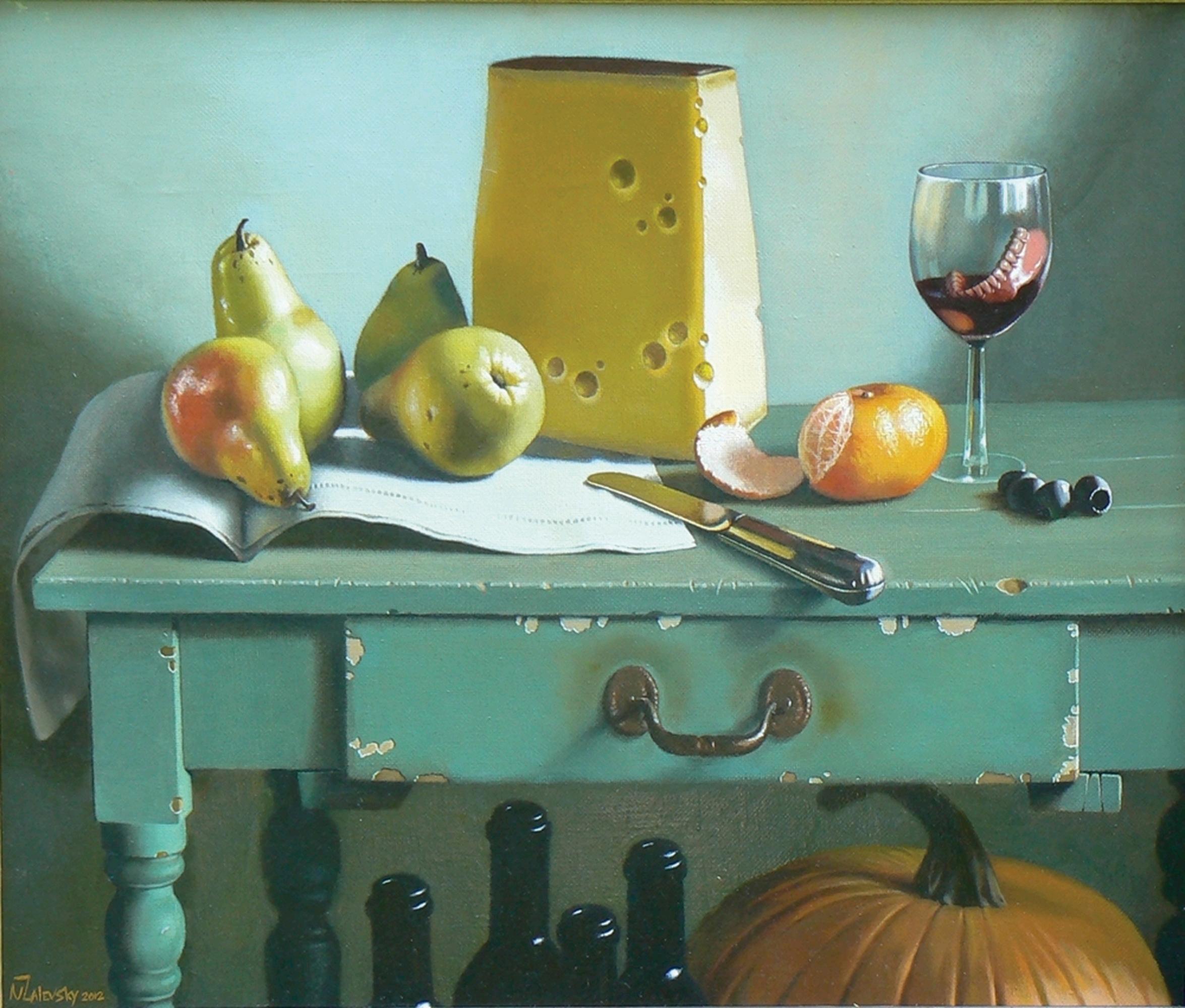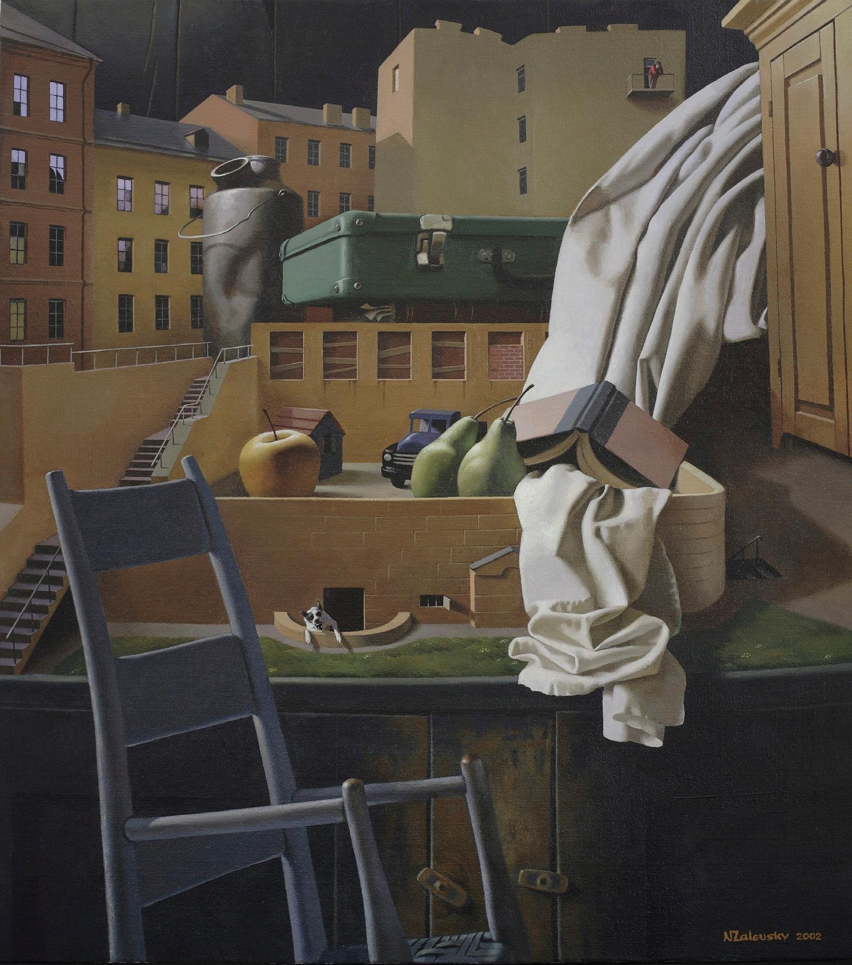 Nicholas Zalevsky, born in Kyiv, Ukraine, lives in Connecticut, USA. He studied at Kyiv Artistic High School and the Publishing Institute in Lviv, Ukraine. Zalevsky has held six solo exhibitions in the USA and Ukraine and participated in numerous group shows in the USA, Germany, and Luxembourg. His work has received contest awards and is recognized for its technical skill, compositional innovation, and contribution to contemporary painting.