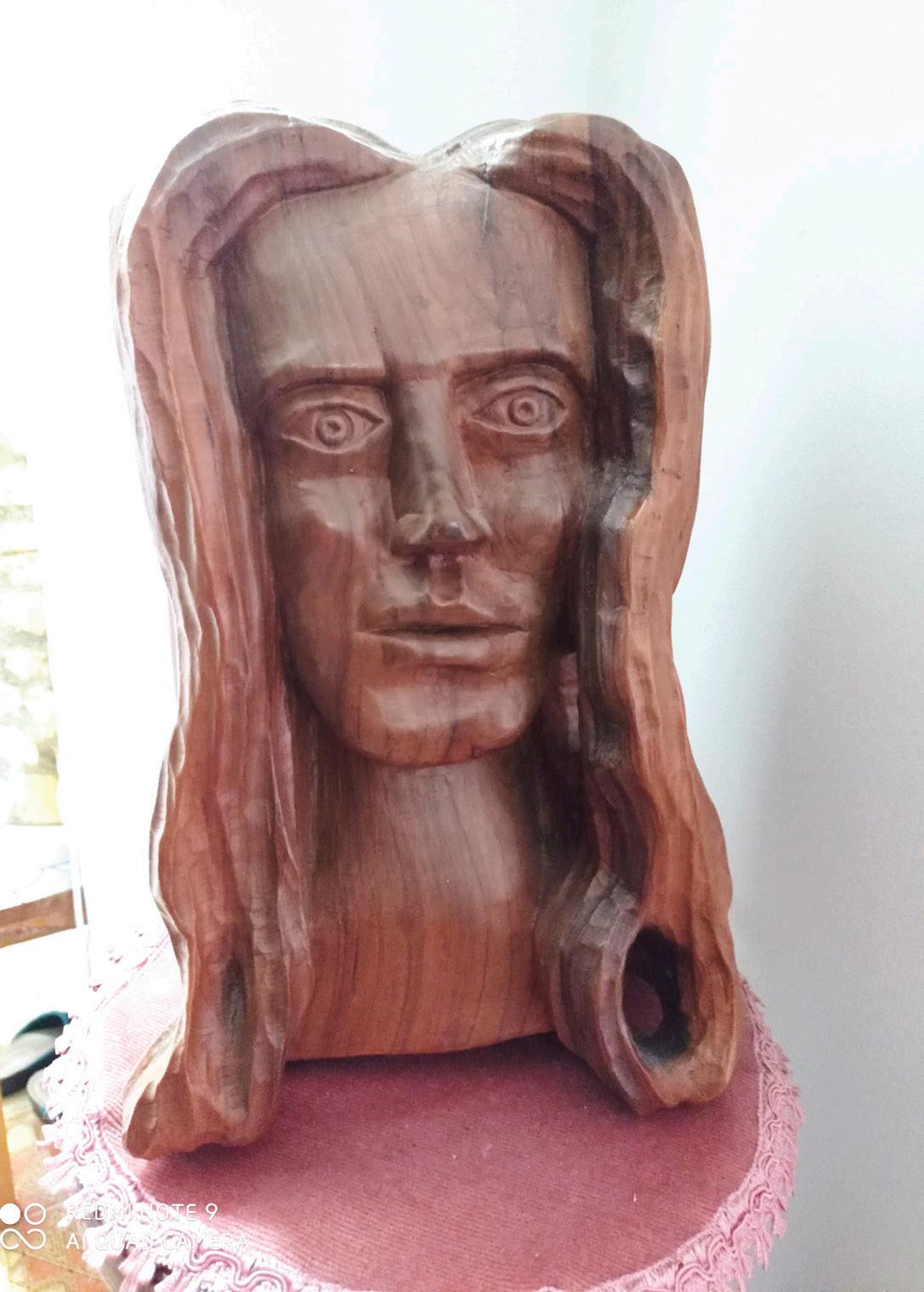 Volto di Uomo Wooden sculpture (olive wood), 33 cm