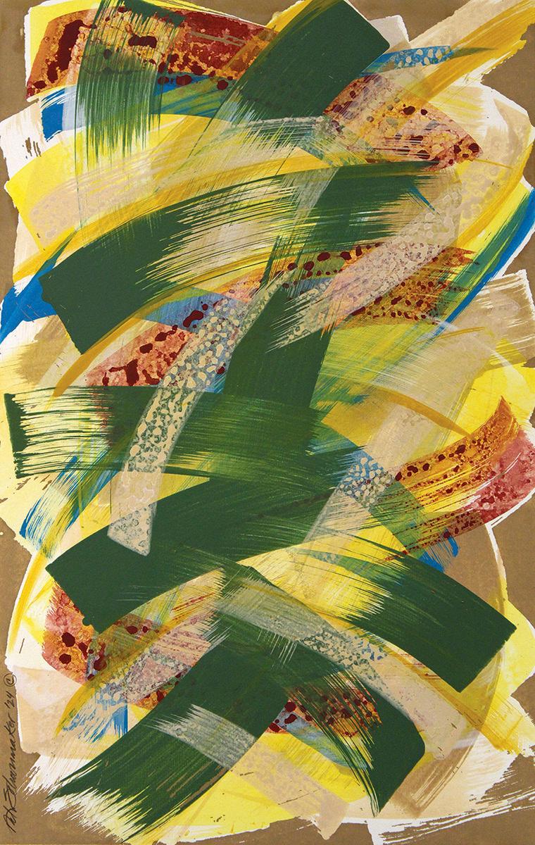 Rita Schoonmaker, born in 1954 in Albuquerque, New Mexico, lives in Las Vegas, Nevada. She earned a BFA from the University of Nevada, Las Vegas in 1976. Schoonmaker has participated in over 60 solo exhibitions and competitions, with works in corporate and private collections. Her creative process balances intentionality and spontaneity, exploring line, color, and movement to convey the essence of each composition. Schoonmaker seeks to move beyond representation, creating artworks that embody emotional resonance while maintaining a dialogue between planned and accidental elements in the act of painting.