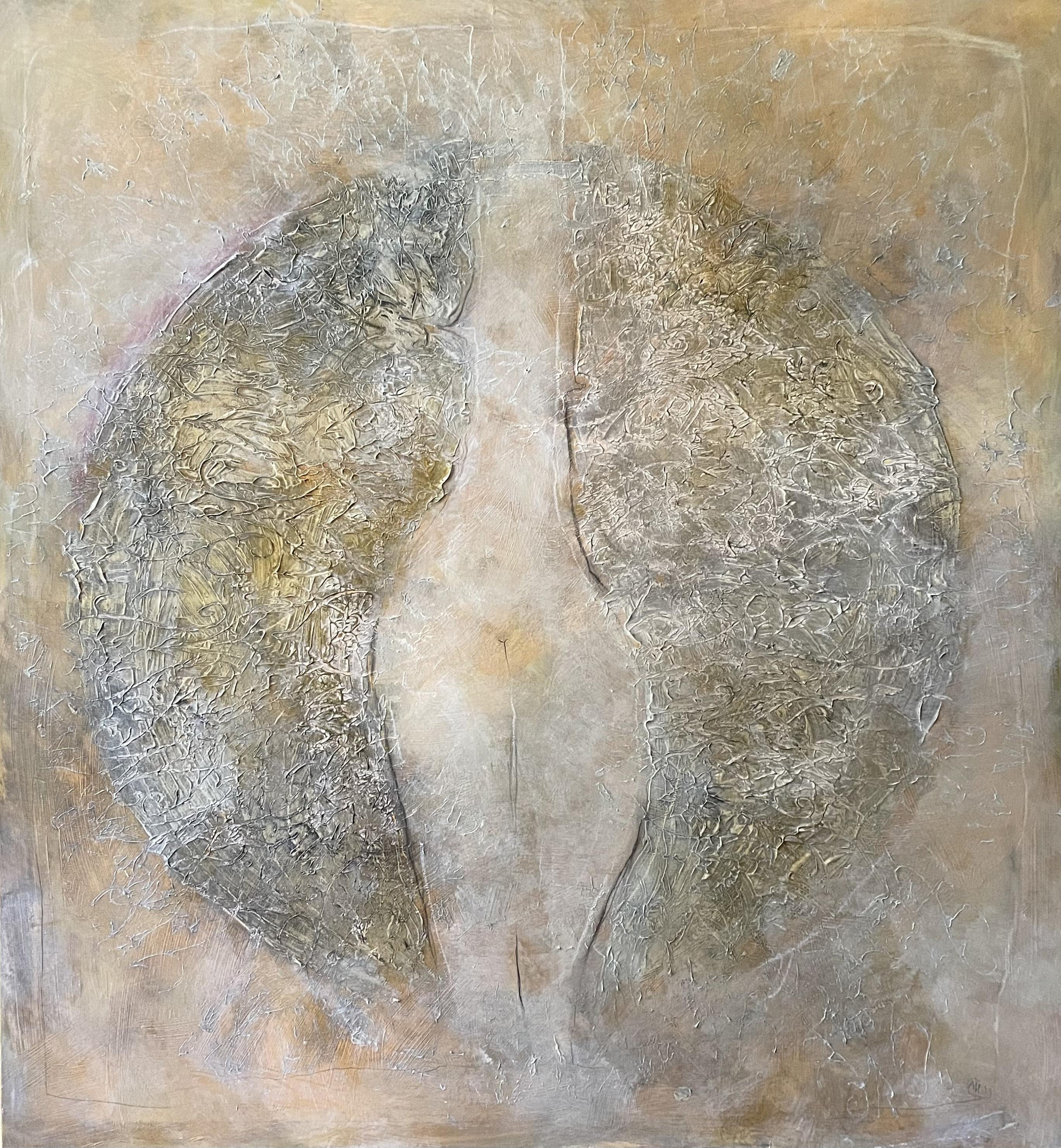 Born Out of the Box is a work that explores the interconnectedness of life through an assemblage of subtle, evocative forms. This composition invites viewers to interpret shapes that resonate with elements from nature, including female, plant, and animal forms, symbolizing our intrinsic connection to all living things on the planet. Interwoven with these organic shapes are hints of human-made objects—architectural carvings, wine bottles, fruit bowls—serving as reminders of our own creations within the natural world.