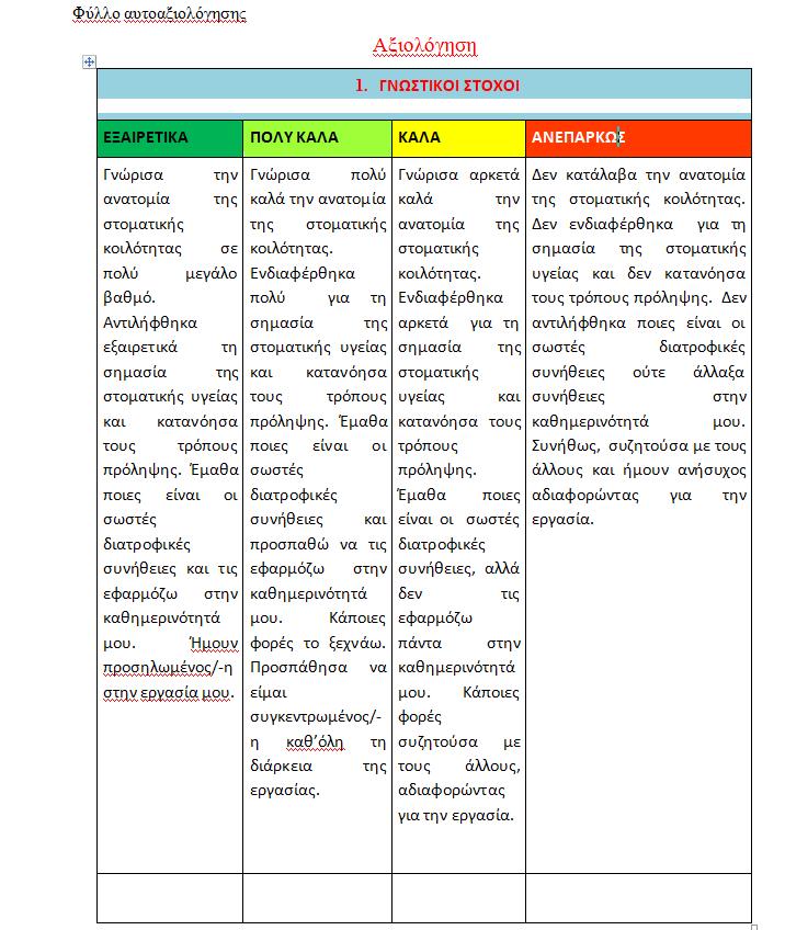 Η σύγχρονη αγωγή για την υγεία αξιοποιεί τις αρχές της δημιουργικής ή βιωματικής ενεργητικής μάθησης , δίνει έμφαση στις σχέσεις , στο πλαίσιο και τη λειτουργία της ομάδας. Η ικανότητα του παιδιού να φροντίζει τον εαυτό του δεν είναι κάτι που μαθαίνεται άμεσα, αλλά που κατακτά το παιδί σταδιακά, μέσα από διαδικασίες που διευκολύνουν την ομαλή ανάπτυξη της προσωπικότητάς του. Σκοπόςτουεργαστηρίουγια τουςμαθητές: • Να αποκτήσουν και να διατηρήσουν θετική στάση και συμπεριφορά στα θέματα φροντίδας της στοματικήςυγείας Επιμέρους στόχοι: • Να αναπτύξουν αίσθημα προσωπικής και συλλογικής ευθύνης • Να καλλιεργήσουν δεξιότητες έρευνας • Να αναπτύξουν την ικανότητα επικοινωνίας και συνεργασίας • Να καλλιεργήσουν την κριτική σκέψη, την παρατηρητικότητα, τη φαντασία και τη δημιουργικότητά τους • Να διαμορφώσουν θετικές στάσεις και αξίες ζωής